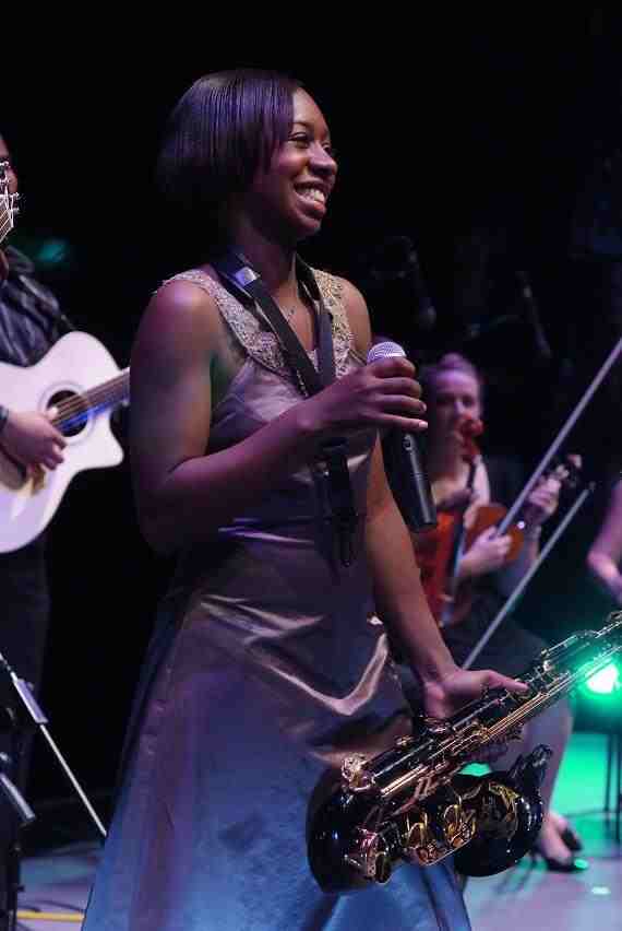Ihre Band ist dann am besten, wenn sie perkussiv, soulig und flächig spielt und am schlechtesten wenn der Keyboarder schlimme Trompetensounds gegen die Saxofonläufe streut und der Gitarrist zu David Gilmour-Solos ausholt. Da dies aber nicht allzu oft vorkam, darf das 1. Set als sehr gelungen bezeichnet werden. Höhepunkte waren dabei für mich das Gospel-Medley und der Auftritt von Special Guest Hilary Mwelwa, der Sängerin des Nu-Soul-Acts Hil St. Soul.